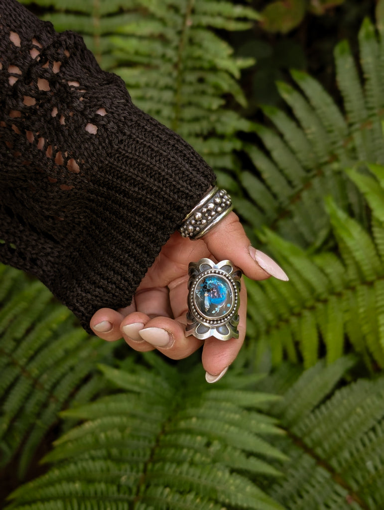 Bague argent 950 et calcedoine cuprifere taillée par mes soins
