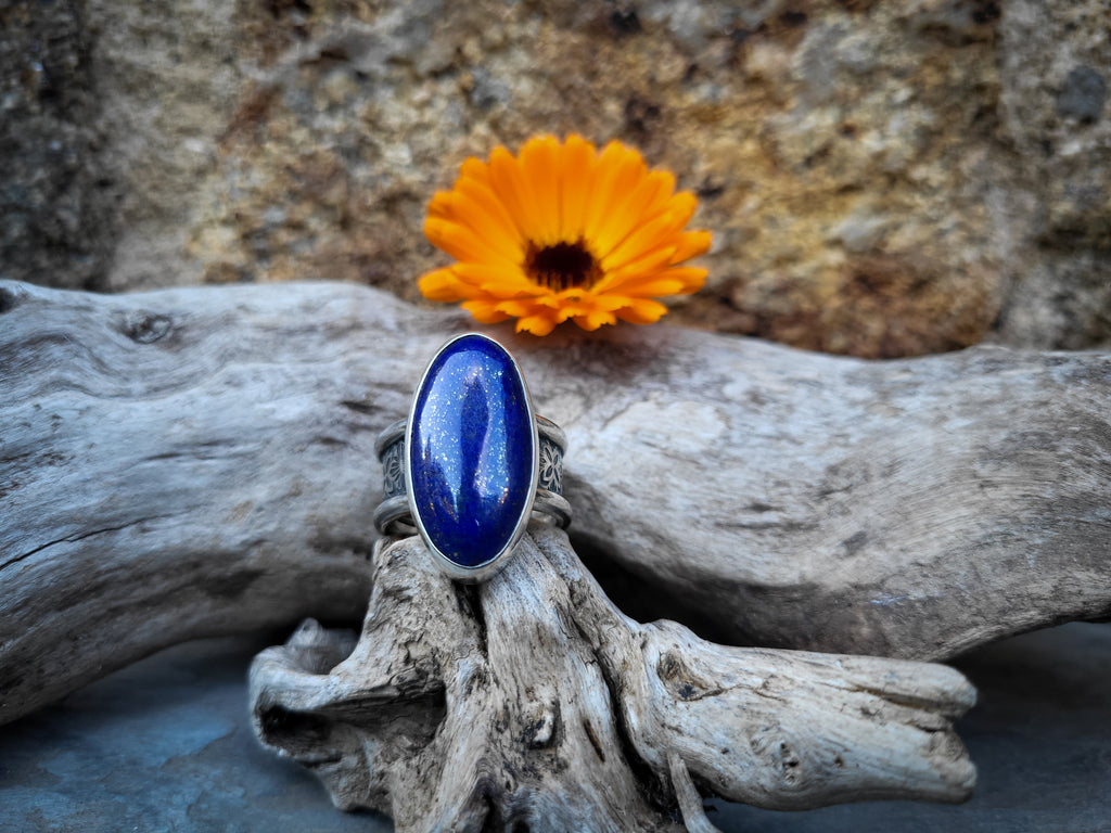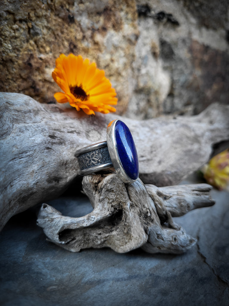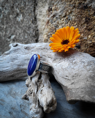 Bague argent 950 et lapis-lazuli taillée par mes soins