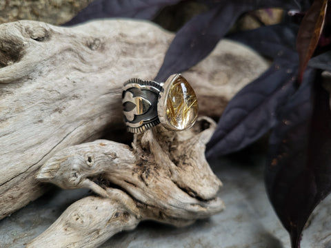 Bague argent 950 et quartz rutile taillée par mes soins.