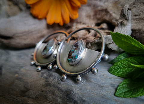 Boucles d'oreilles argent 950 et calcedoine cuprifere taillée par mes soins