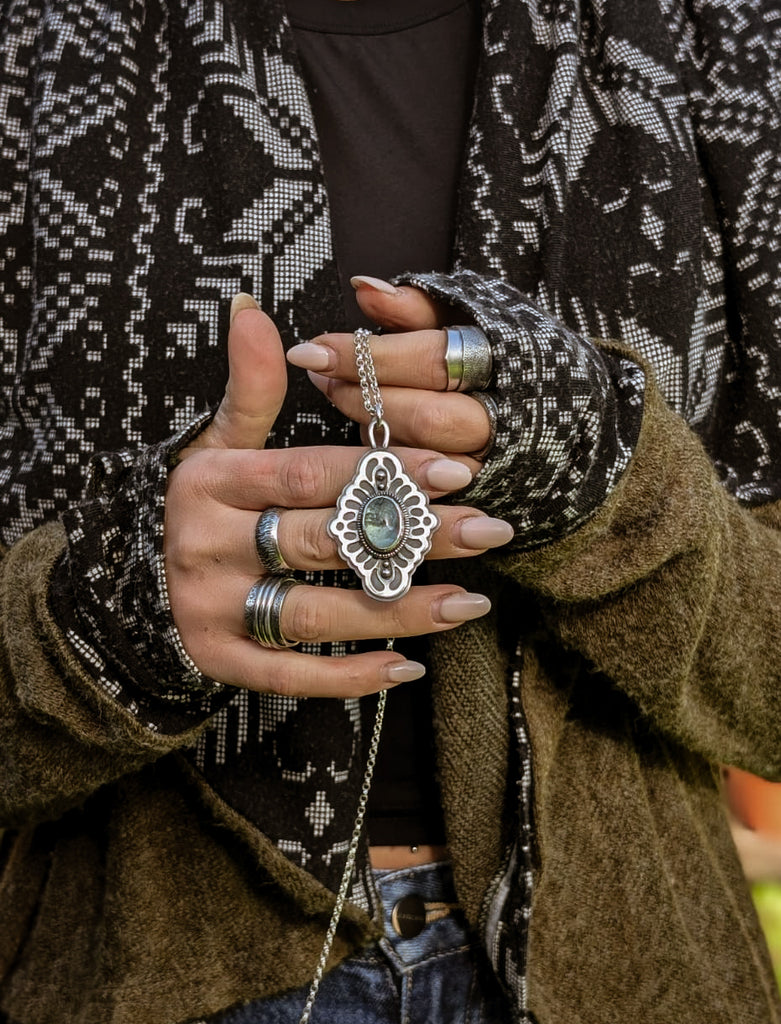 Pendentif argent 950 et aigue marine taillée par mes soins