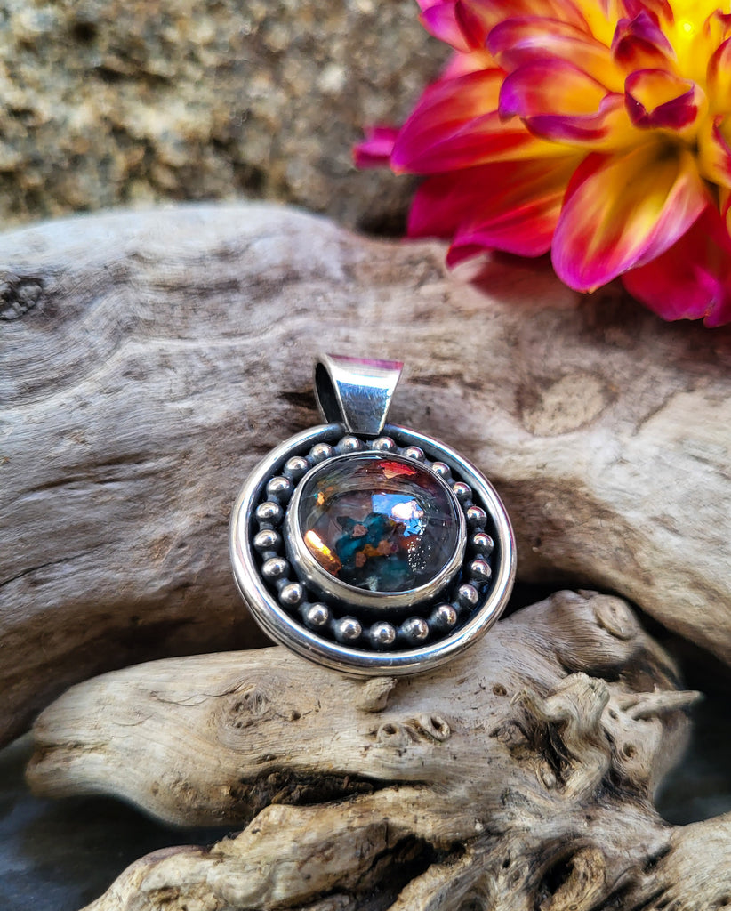 Pendentif 950 et calcedoine cuprifere taillée par mes soins.